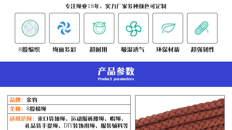 彩色棕色包芯圓繩